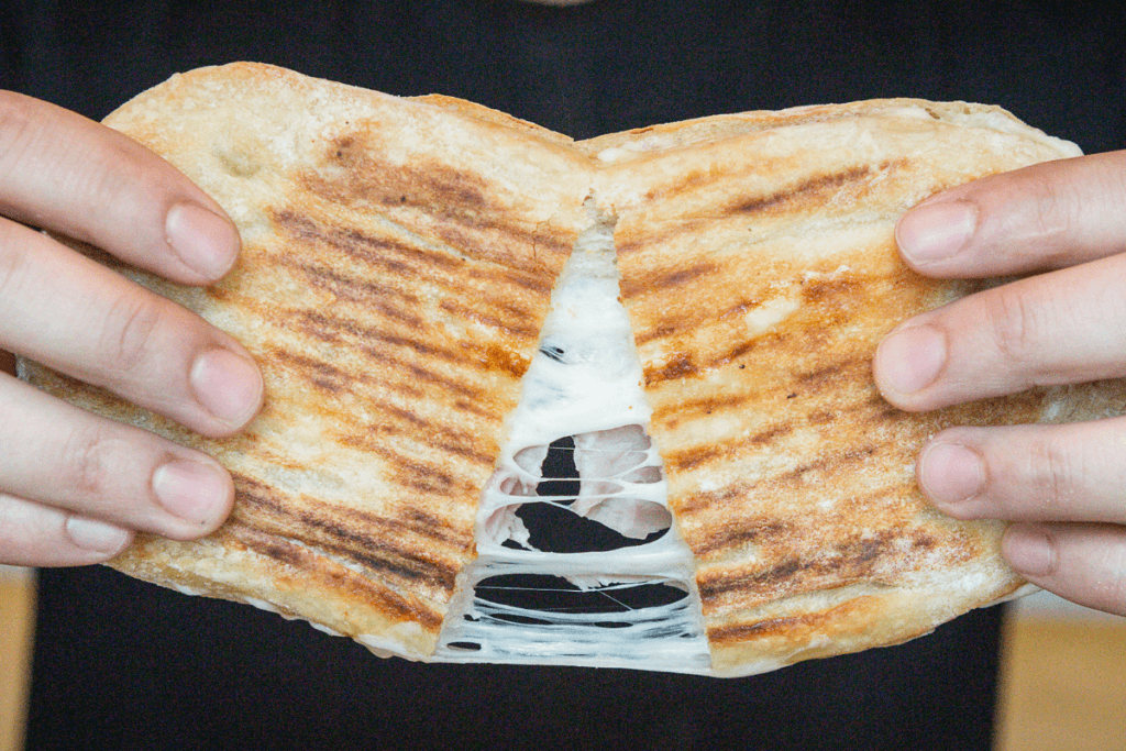 I grew up in a very small town in India that had delicious local cuisine but no Western restaurants. The first time I tasted a sandwich was in 1998 when Ramu’s Corner, now an institution in my town, first opened. My favourite was the Manchurian Cheese Sandwich, made with Indian Cheddar, green chillies and spring onions on milk bread. The sandwich was pressed into a griddle before being toasted over an open flame and served with chilli ketchup. Now, my own version of grilled cheese definitely makes me feel nostalgic for that gooey, smoky, crispy bite I first had over 20 years ago.