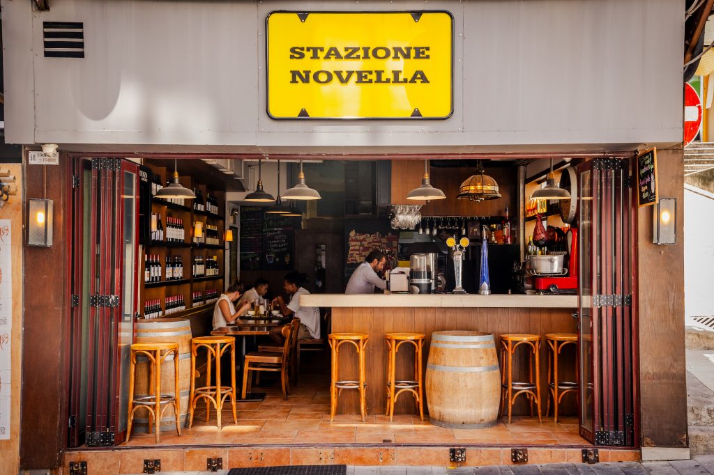 Located on the bustling corner of SoHo’s Staunton and Aberdeen Streets, Stazione Novella is a neighbourhood Italian bar that honours the simple Italian wine bars around the train station in Florence – charming boltholes that welcome guests from morning to evening. The bustling venue reflects the vibrant, transient energy of its junction location, with guests coming and going throughout the day.